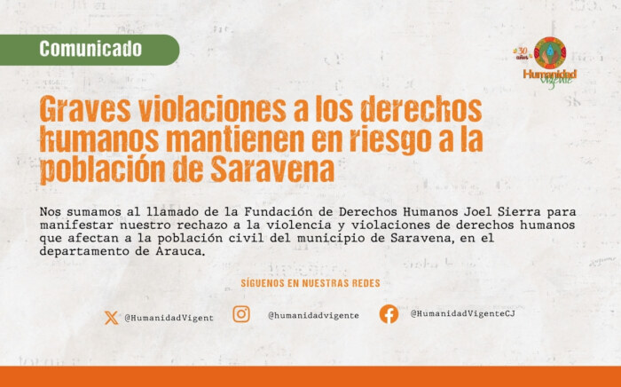 Nos sumamos al llamado de la Fundación de Derechos Humanos Joel Sierra para manifestar nuestro rechazo a la violencia y violaciones de derechos humanos que afectan a la población civil …